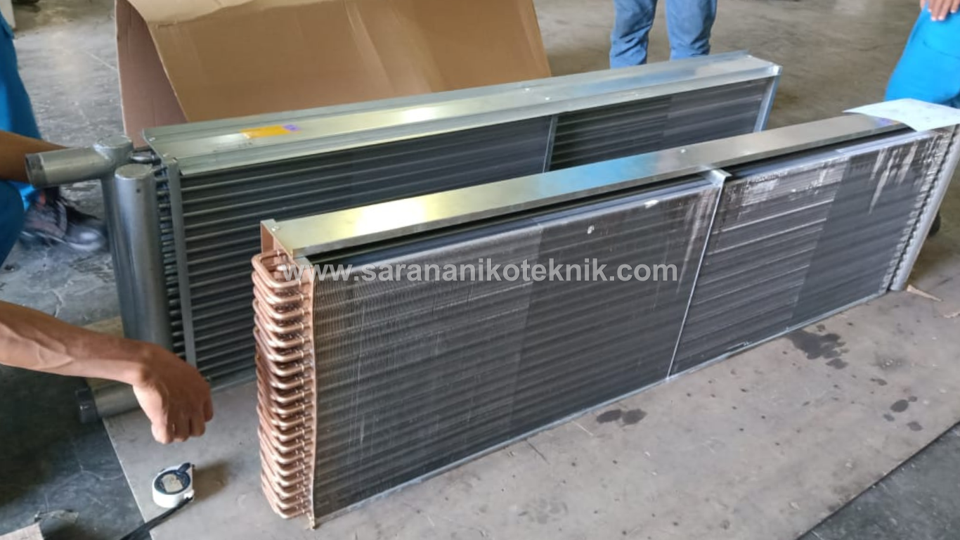 Fin coil merupakan komponen penukar panas dalam sistem HVAC dan refrigerasi yang dirancang untuk meningkatkan efisiensi perpindahan panas antara fluida (udara) dan media pendingin atau pemanas seperti refrigerant, air, atau steam. Dengan struktur pipa (tube) yang dilengkapi sirip (fin), komponen ini memperluas area kontak permukaan sehingga mempercepat proses transfer panas secara konveksi.